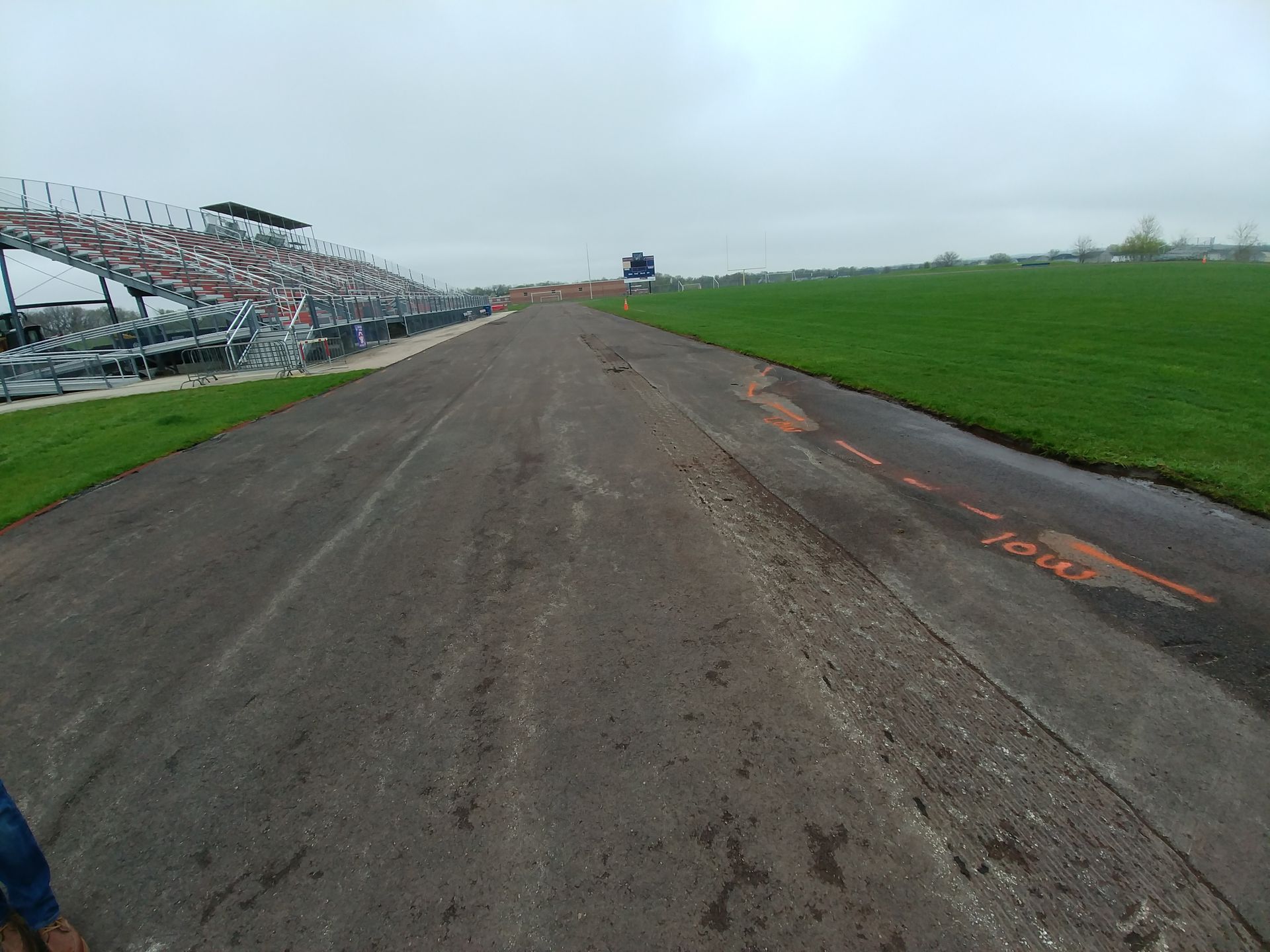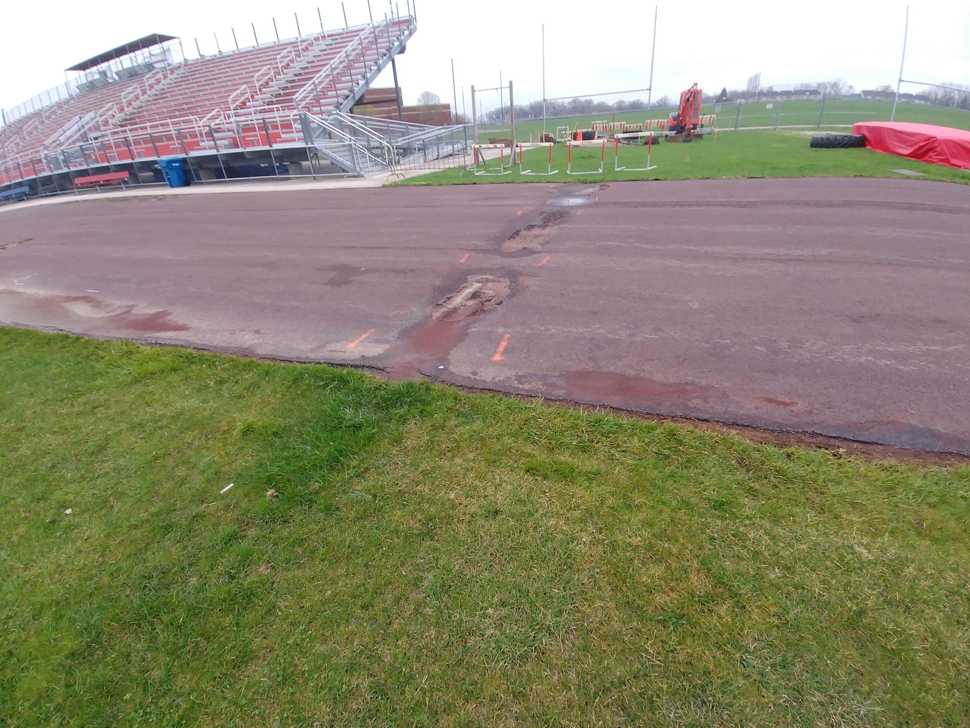 The existing running track had a severely settled section in one quadrant, rendering it unusable. The School District needed to upgrade the condition of the track for the safety of the users, and construction needed to be completed during summer while school was out of session.