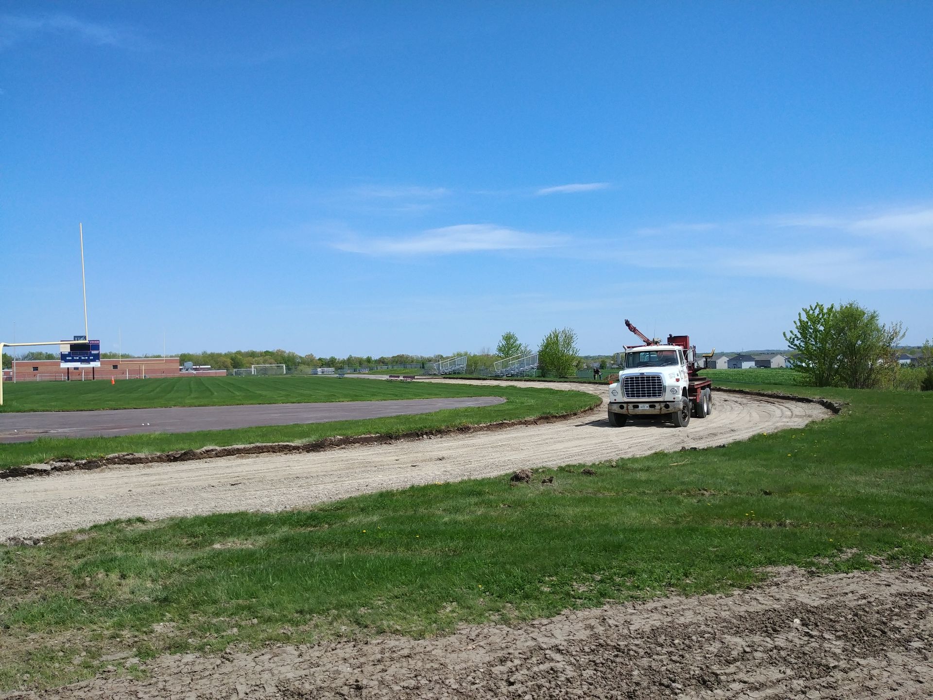 The plans involved a full-depth removal and replacement of one quarter of the track. Prior to plan preparation, a soils investigation was conducted in collaboration with a soils subconsultant to determine the cause of the track settling. It was discovered that earth fill had been placed over a layer of topsoil during the site's construction about 15 years earlier. The topsoil layer had settled under the weight of the fill but had likely reached its compaction limits at the time of the investigation. To address potential further settling, the new asphalt pavement section included a geogrid layer for added strength.