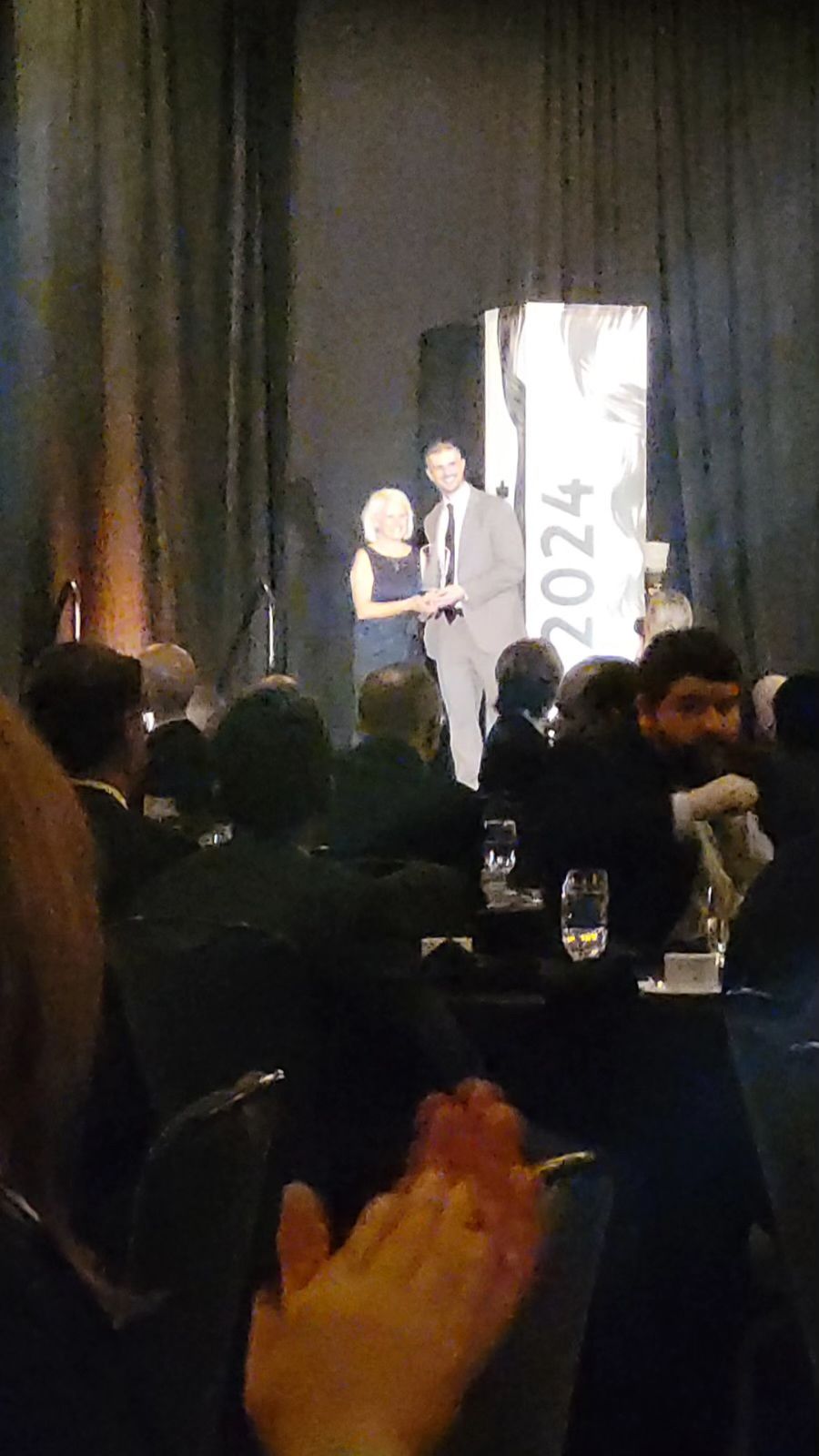 Nick Piekarski, PE, accepts the 2024 Emerging Professional of the Year award at the ACEC-IL Engineering Excellence Awards Gala on Thursday, February 22, 2024 at the Hyatt Regency O'Hare Chicago.