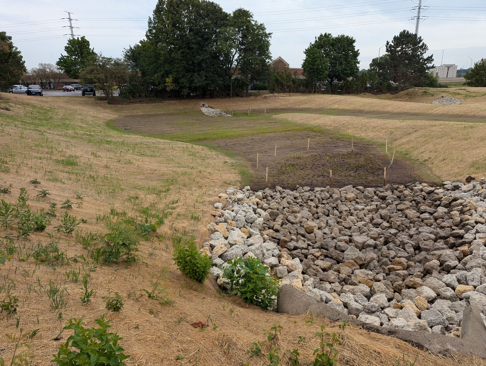 - Regraded the basin for improved infiltration and created a meandering flow path for stormwater treatment
