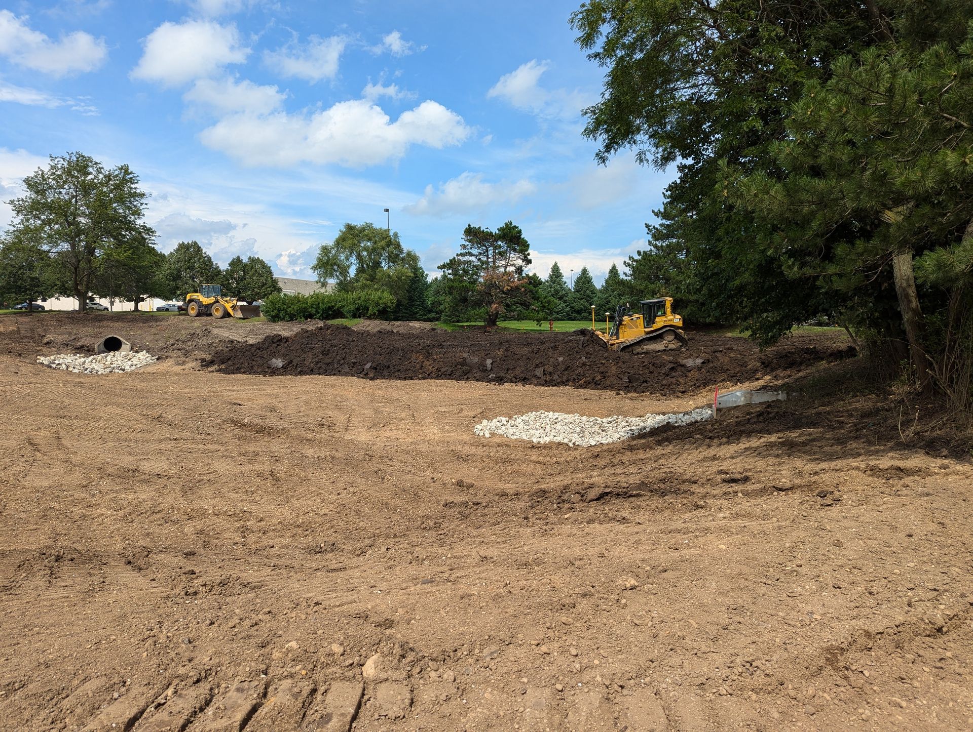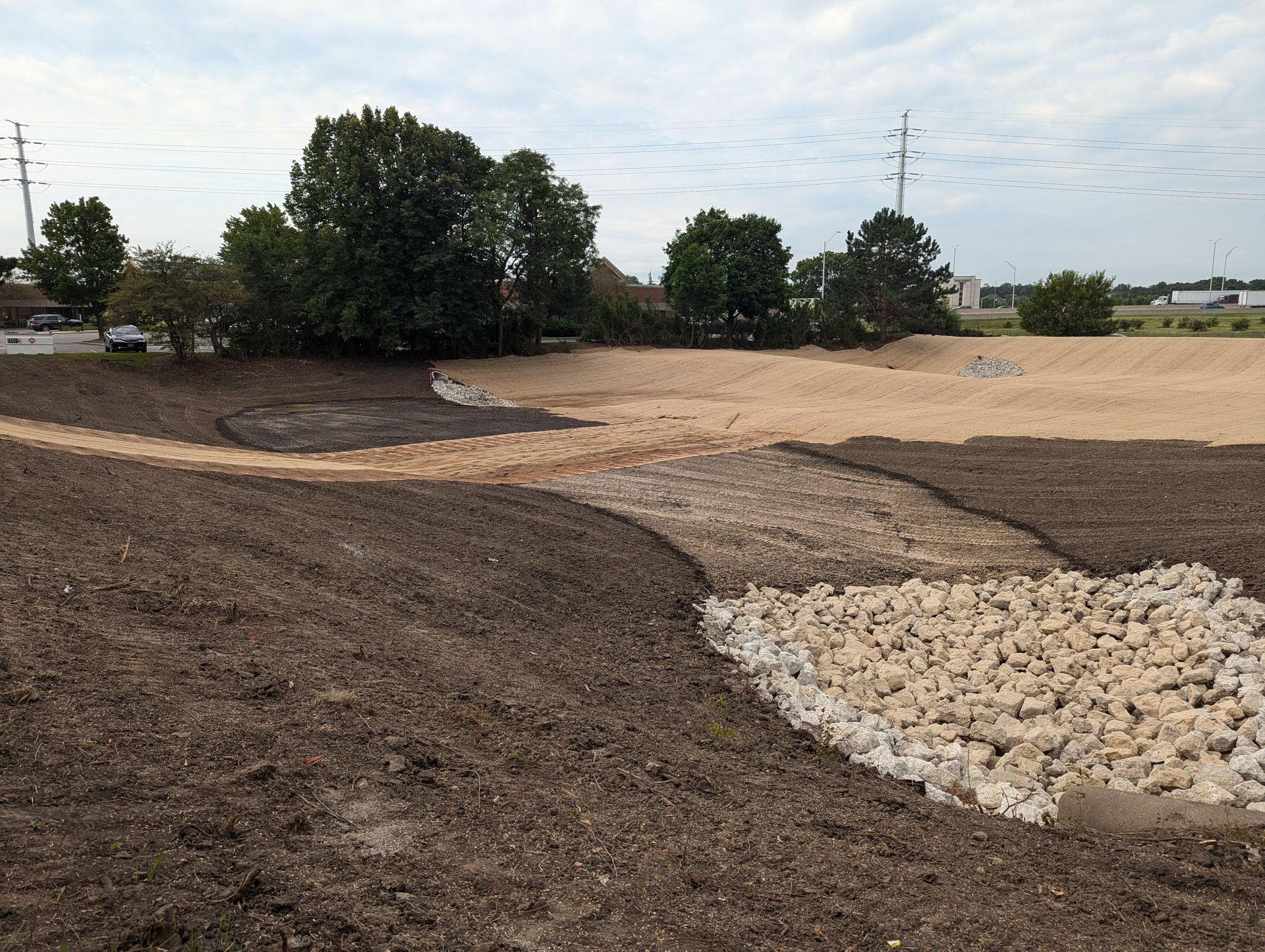 HLR’s comprehensive services included topographic surveys, custom planting plans tailored to the basin’s unique hydrology and sunlight conditions, and environmental compliance coordination with the Illinois Department of Natural Resources (EcoCAT), Kane County Stormwater Management, and the IEPA. Plans and specifications covered demolition, grading, soil erosion and sediment control, and landscaping. Contract documents and assistance in contractor selection ensured seamless execution. The project was completed in late summer 2024, requiring only two weeks of active onsite work, followed by ongoing plant monitoring throughout the fall growing season.