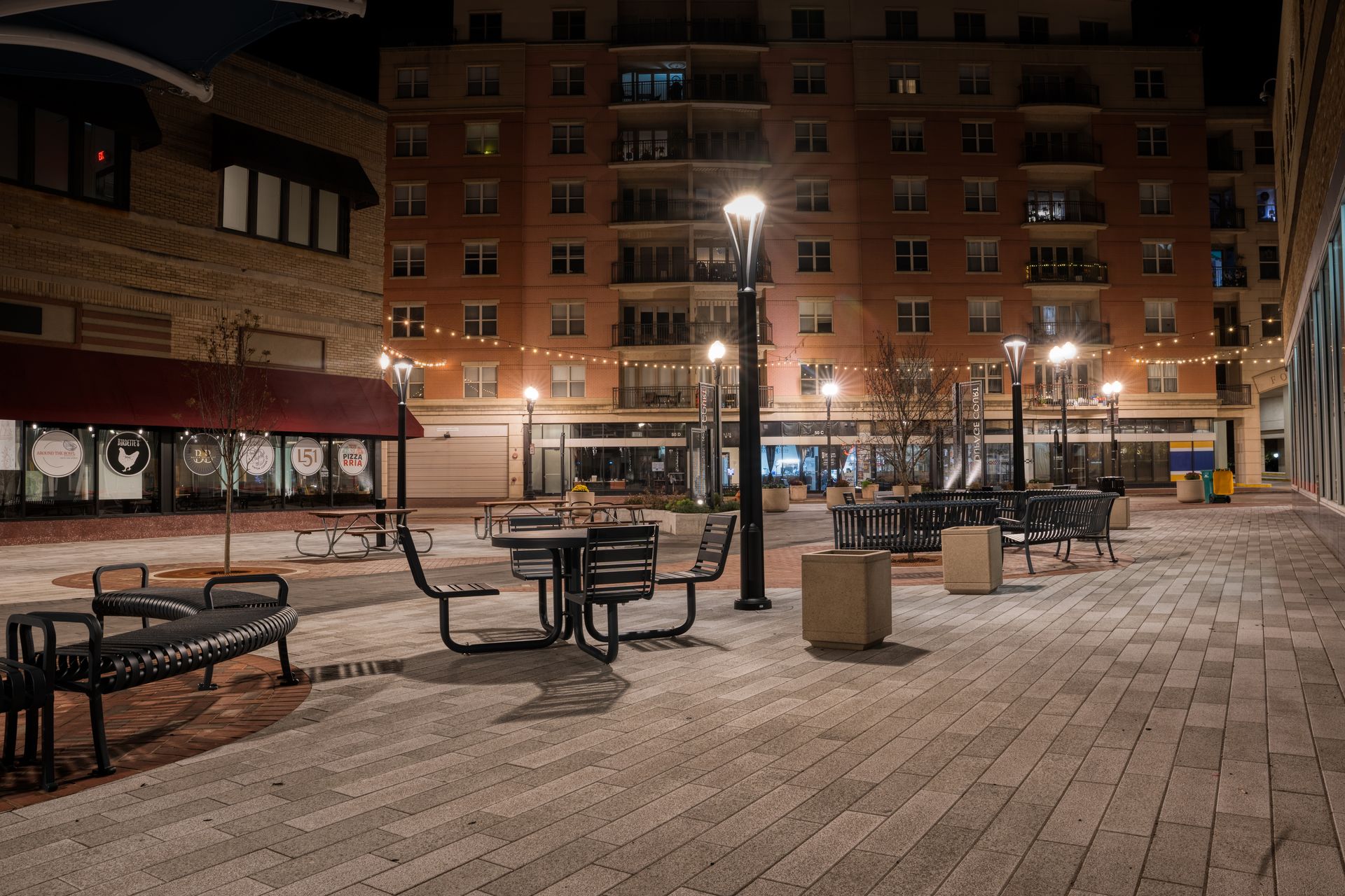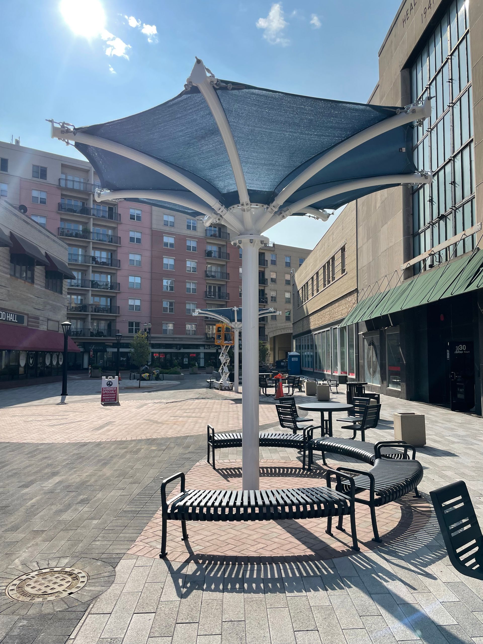 - Upgraded pavers, canopies, benches, tables, energy-efficient lighting, and artist-rendered manhole covers