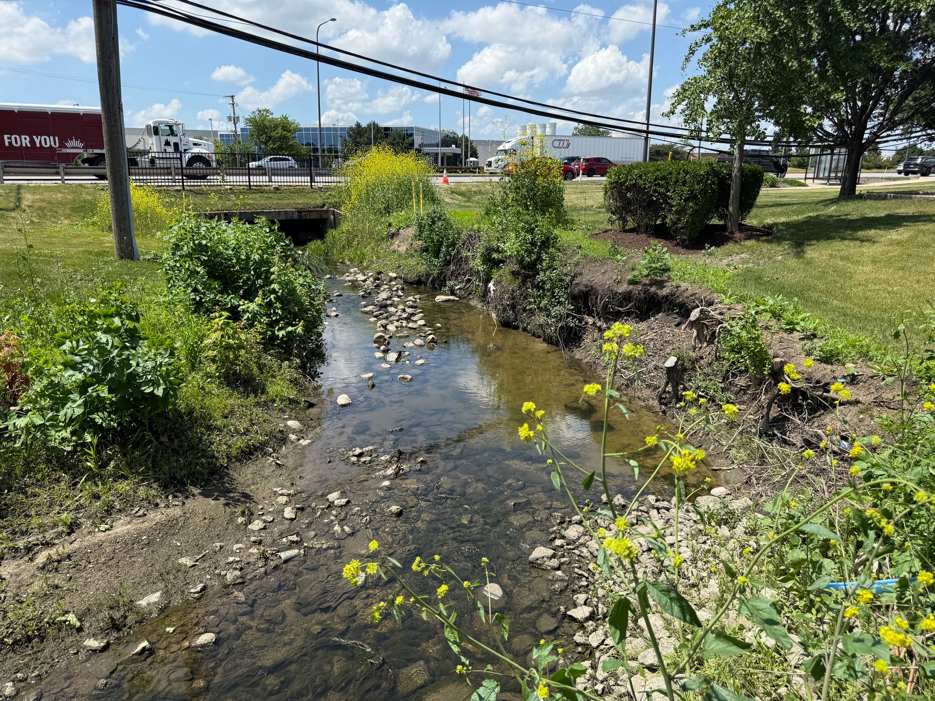 This project addressed the need to manage and restore approximately 30 miles of drainage swales within the Elk Grove Village Business Park, one of the nation’s largest industrial parks. The system spans hundreds of properties and is impacted by invasive vegetation, erosion, access constraints, and complex coordination with over 800 adjacent businesses.