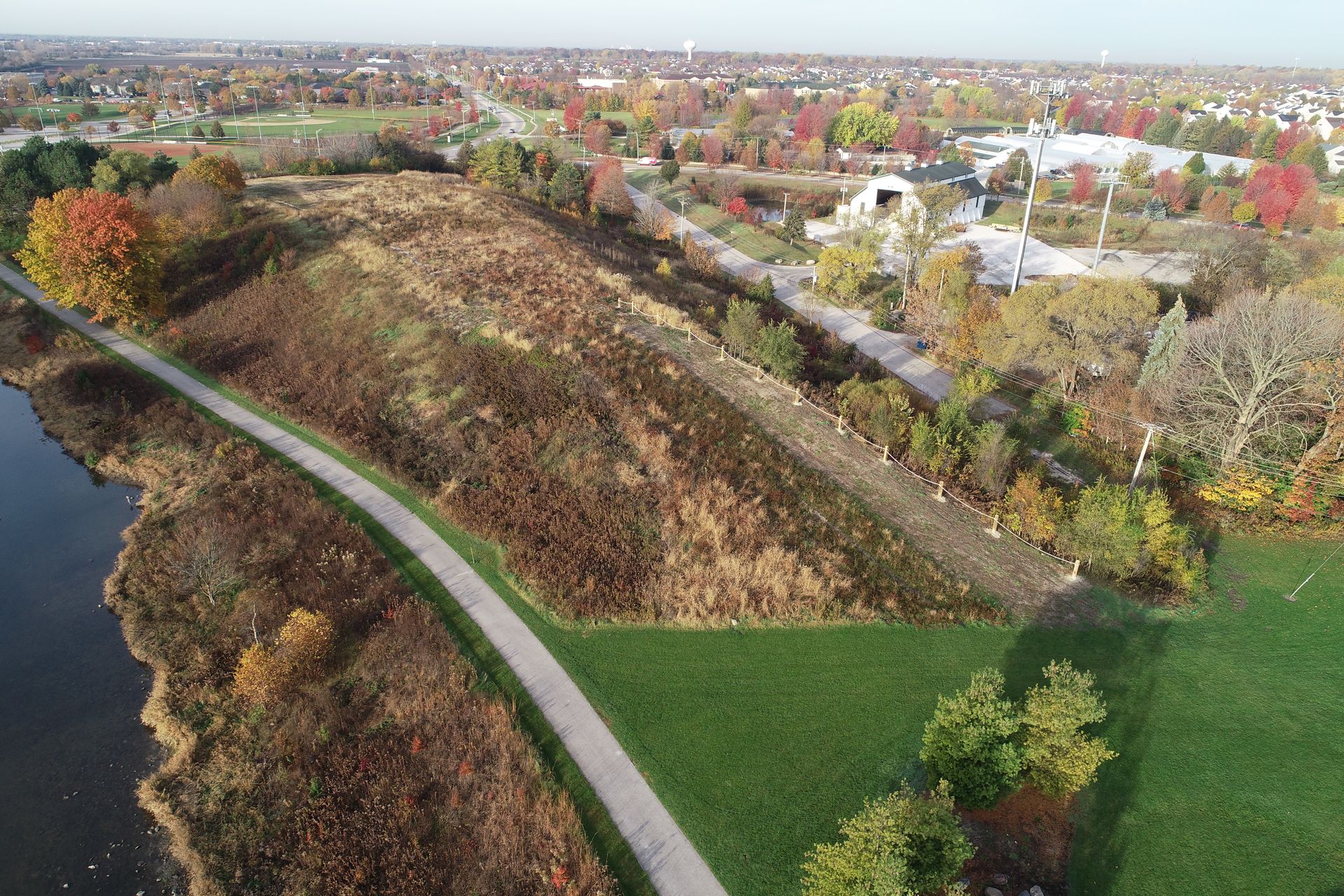 In the winter of 2020, Hampton, Lenzini and Renwick, Inc. evaluated the current state of the sled hill. After the dredged soil was deposited on the sled hill, it was compacted by trucks repeatedly driving over the area to deposit more loads. The soil was hard and mixed with an abundance of aggregate material. The current vegetative state of the sled hill was comprised of non-native vegetation, including teasel, phragmites, motherwort, and other aster species, creating a heavy invasive seed bank throughout the site. Hampton, Lenzini and Renwick, Inc. developed and initiated a management plan to convert this site to a native prairie.